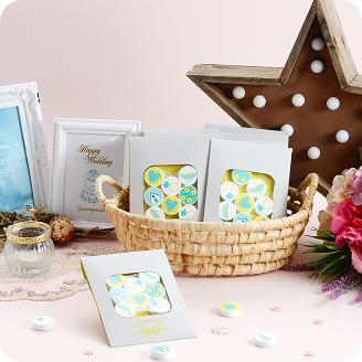 英語でメメント=「記念」、フランス語でボンボン=「お菓子」を意味するイラスト入りラムネ菓子・mement bonbons(メメントボンボン)。季節の行事やちょっとした記念日を祝うために、結婚・卒業式・正月など多様な絵柄を展開しています。贈る人ともらう人、両方を笑顔にするプチギフトです。